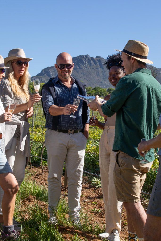 A curated storytelling stroll through through three of Franschhoek’s top wine farms—Mont Rochelle, Mullineux & Leeu, and La Cotte Heritage Farm. Taste nine wines, explore vineyards and gardens, enjoy spectacular scenery and end with a delicious farm-style lunch on this crowd-free wine experience.